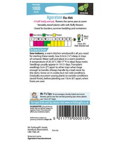 Versatile, dwarf plants with soft fluffy flowers. Great for borders, summer bedding and containers. Blue Half Hardy Annual.