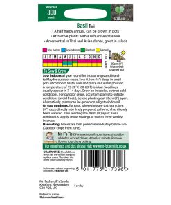 A traditional flavour for many oriental dishes, slightly spicier than other basils. Especially good for authentic Thai dishes such as Phad Thai rice or noodles. Half Hardy Annual.