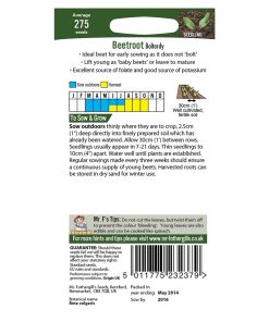 The most popular beetroot variety, it comes highly recommended and is ideal for early sowing as it does not ‘bolt’. Lift young for ‘baby beets’ or leave to mature.