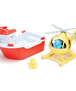 The Green Toys Rescue Boat and Helicopter is ready to save the day at sea! This 2-in-1 water toy is ideal for bath, pool or garden.