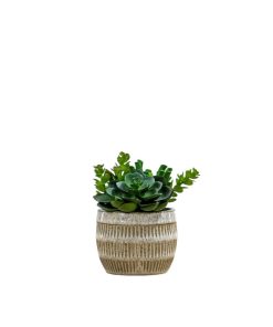 Bring nature inside with this green tonal succulent mix, finished in a neutral textured ceramic pot to complete the look.