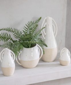 Offering a lovely organic shape, this beautiful handmade ceramic vase with its partial white glaze will suit a wide range of interiors. Two other coordinating vases and a pot are available, to use either grouped together or individually.