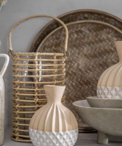 This stunning ceramic vase features an unglazed top section, which shows the beautiful natural tone and texture of the biscuit, paired with a white glaze on the bottom section. Contrasting designs on the two areas add interesting texture. A larger version is also available, and both are offered with a grey glazed bottom section. All look great used individually or grouped together.