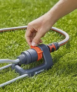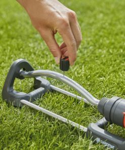 Just place it on the lawn and set the range anywhere between 7 and 17 metres using the slider. The width range of the Aqua S is max. 13 metres. Once the hose is connected, you can turn on the water and your plants will be reliably watered. It’s not just good for the plants, it also allows you to spend more time on other things. The durable material with metal components ensures that the sprinkler remains firmly on the ground. It is also worth noting that the Aqua S is protected against frost as well as UV radiation, meaning that it doesn’t always need to be removed from the lawn after use. The 5-year manufacturer’s guarantee further highlights its top-quality, together with the Made in Germany-seal. Cleaning the Aqua S is as simple as setting it up. The water connection has a built-in metal filter, which can be taken out very easily by rotating the connection. Then, just hold it under running water to clean it off. If lime builds up on the nozzles, use the needle provided: it is located at the other end of the sprinkler in a screw cap. Use it to unclog the nozzles with a quick poke.