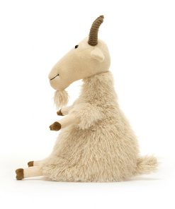 Ginny Goat is a chonky champ and the merriest goat on the mountain! A whirl of tufty double-cream softness, with dainty hooves and cordy coffee horns, this sure-footed sweetie is a gorgeous guide. With a tufty beard and tail to match, peaceful smile and leafy ears, Ginny’s going places!