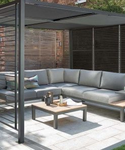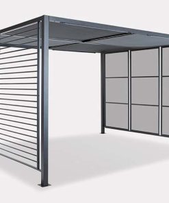 The simple yet effective design will allow you and your guests to dine outdoors in comfort. The practical Panalsol® is designed for year-round use and will add a touch of luxury to your garden. The strong powder-coated aluminium frame is rust proof. Featuring solar powered LED belt lights in the roof, the Panalsol® will add light to your night. The roof panels are made with soft Textilene which has endured vigorous testing to ensure it doesn’t deteriorate in either hot or cold temperatures. The sliding roof panels offer high UV protection of 50+. The frame boasts slatted back panels that allow you to hang plants or decorative items. With fixing plates included, it is possible to fix the Panalsol® so it can be left outdoors all year round.