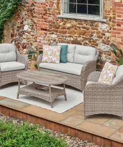 Key Features:-Â Â Multi-toned Everweave with braided detail: 100% waterproof, strong UV resistant and maintenance free; Seasonproof EDEN cushions which are water repellent, UV resistant and quick drying with Stainsafe Technology; Long lasting aluminium frame; Stackable roundback chairs for comfort and easy storage (dining chairs only), Removable Sand coloured zip covers for easy cleaning; Ceramic wood-effect glass table tops.