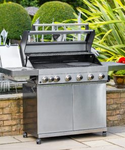 Gourmet Grillstream BBQs have got all the features of their classic range, plus an integrated side ‘Steak Shelf’ – an infrared ceramic sear burner – for cooking meat or vegetables. And with a stainless steel finish, glass viewing hood and LED control knobs they look the business too.