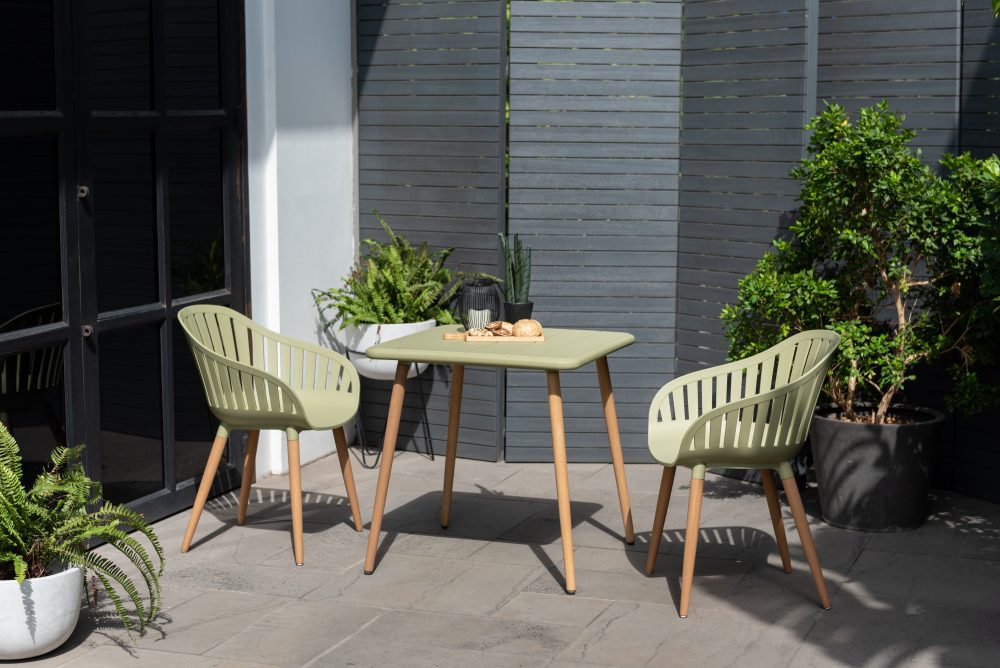 A fresh and urban design that will revive your outdoor space, the Nassau Bistro set includes chairs and table top made of recycled and maintenance free Social Plastic®, both combined with FSC Eucalyptus that adds a warm and natural touch. This set is ideal for both indoor and outdoor settings, creating a colourful experience.
