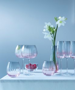 A pair of mouth-blown tumblers with fluted bowls, hand painted by skilled craftspeople with pink and grey lustre. The sheer colours diffuse towards the centre of each piece. A versatile stemless glass for water, wine or cocktails.