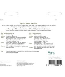 Spring sowing variety for early crops of well-filled, short pods. The compact, robust plants are perfect for exposed windy locations, smaller gardens and even containers.