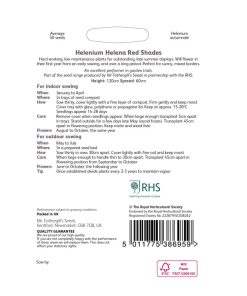 GROWING INSTRUCTIONS: Sow indoors, January-April, 0.5cm (¼”) deep, in trays of seed compost. Keep moist and warm at approx. 20°C (68°F). Thin (prick out) seedlings when large enough to handle. Stand outside for a few days in late May (avoid frosts), before planting out, spacing 45cm (18”) apart. Or, sow outdoors, May-July, in a seedbed. Keep moist. Thin (prick out) seedlings, 30cm (12”) apart, as they develop and transplant to flowering position, September-October. Flowers: June to October. Remove dead heads to prolong the flowering season.
