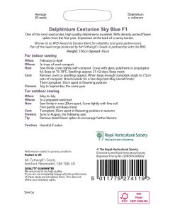 MR FOTHERGILL’S – RHS DELPHINIUM CENTURION SKY BLUE F1 SEEDS