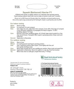 MR FOTHERGILL’S – RHS SQUASH BUTTERNUT HARRIER F1 SEEDS