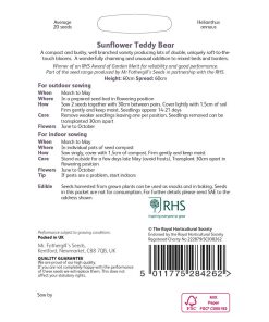 MR FOTHERGILL’S – RHS SUNFLOWER TEDDY BEAR SEEDS