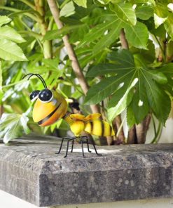 A fun and colourful ornamental metal bee with a hand painted finish.