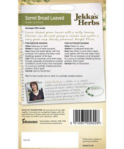Lance shaped green leaves with a zesty, lemony flavour, can be used young in salads and makes a very good soup.