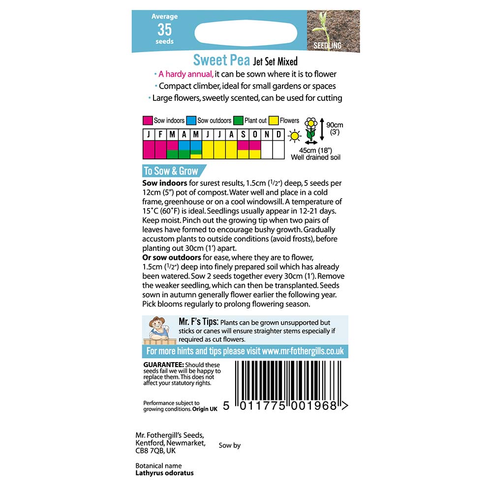 A semi-dwarf, more compact climber, with bright blooms on strong stems, perfect for the smaller garden and good for cutting. 90cm x 45cm Mixed Hardy Annual JAN-MAY, SEP-OCT, MAY-OCT