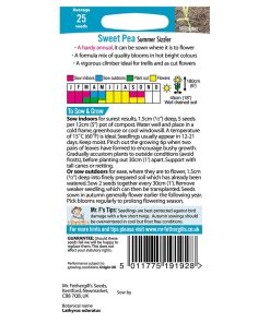 This blended mixture consists of highly regarded ‘Spencer’ sweet peas in a glowing range of hot colours. Wonderful for bright summer screening, growing over fences, trellis and as fragrant cut flowers. 180cm x 45cm Mixed Hardy annual JAN-MAY, SEP-OCT