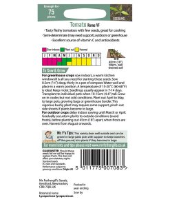 Very tasty ‘plum’ tomatoes with few seeds, for outdoors or in a greenhouse. Semi-determinate.