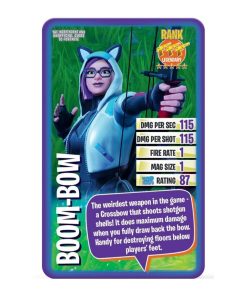 The online game that defined a generation, there’s no denying that Fortnite Battle Royale changed the video game landscape, and paved the way for a whole sub-genre of competitive games. Loved by gamers young and old for its colourful aesthetic and addictive action, gamers can now get their hands on this exciting new edition of Top Trumps – The Independent and Unofficial Guide to Fortnite! Test your knowledge of Fortnite as you deploy your weapon cards according to their strengths, fire off stats in an attempt to outrank your opponents, and loot their cards for your own. You won’t need a hundred players or a parachute to succeed here – just good old fashioned strategy and a bit of luck. Will you use the Assault Rifle for its fearsome damage per second, or the Heavy Sniper Rifle for its immense damage per shot? Maybe you prefer the Minigun for its impressive mag size. Featuring artwork from the franchise, plus fascinating insights into the kinds of weapons Fortnite has to offer, you just might come away with some new ideas for your next match. So deal your cards and get started!